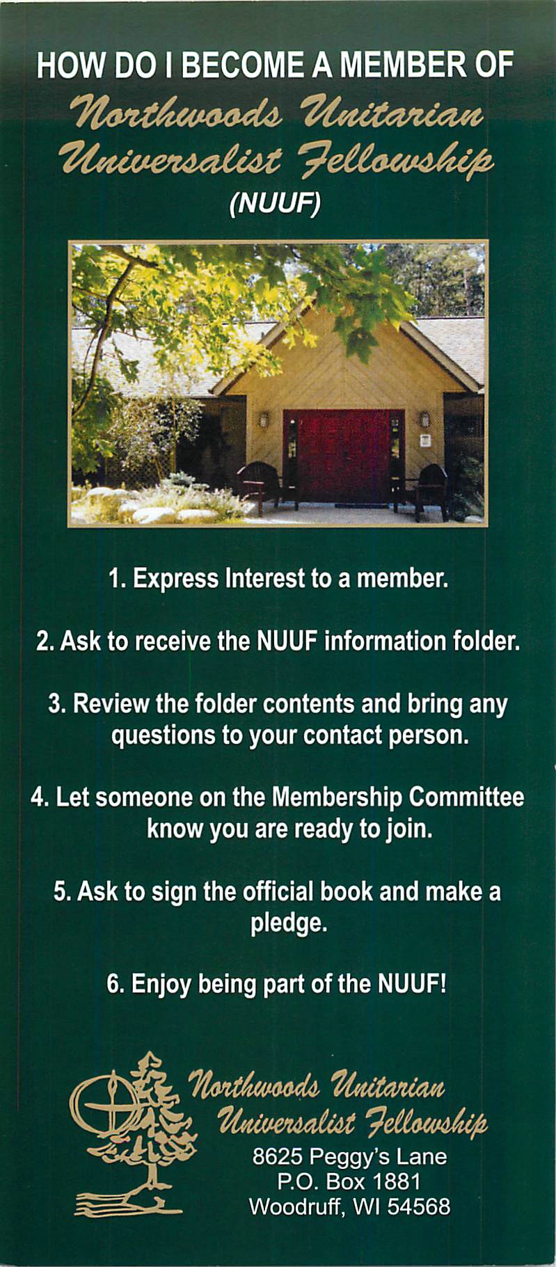 We welcome anyone who is sympathetic with our purposes to become a member of our Fellowship. Membership is open to all persons 18 years of age and older regardless of race, color, gender, affectional or sexual orientation or national origin.